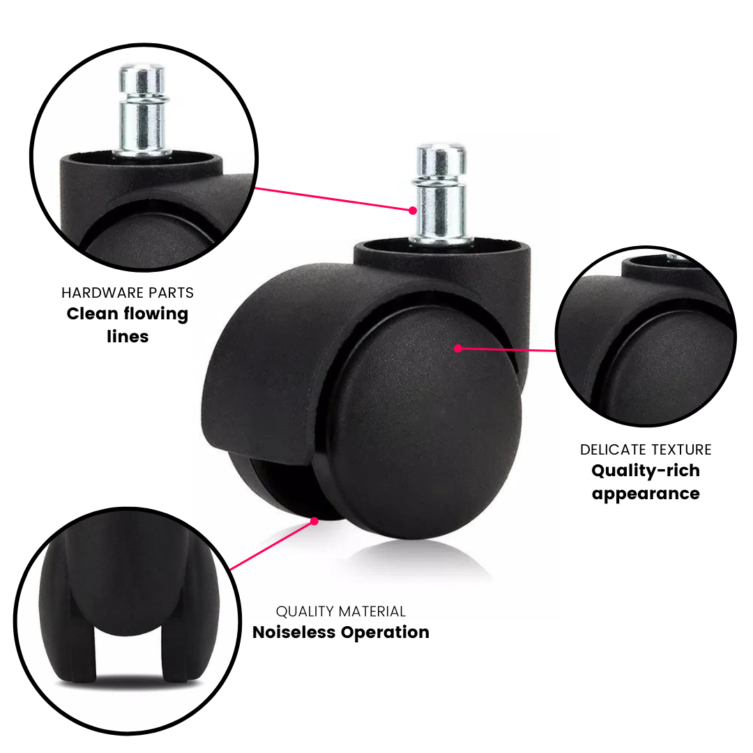 4.Universal Compatibility: Our office chair wheel set is compatible with most office chair models, making it a versatile choice for anyone looking to upgrade their chair accessories. These revolving chair wheels set fit seamlessly into existing configurations.